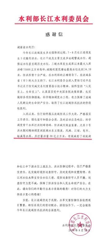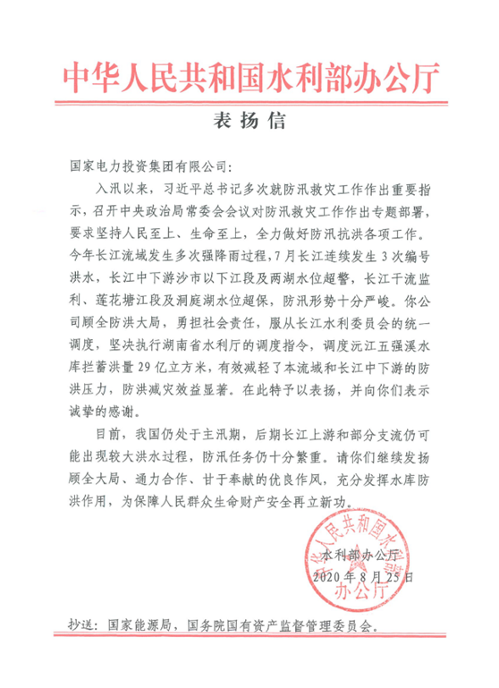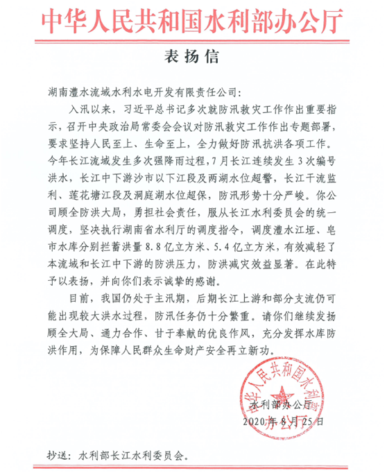 负责开发运营湖南防洪硬核工程的是国电投五凌公司、长江委澧水公司和国网湖南电力等知名企业,他们责无旁贷地挑起了确保三湘四水防洪安全的重担,多年以来为湖南的防洪度汛做出了突出贡献。在应对2020年湖南特大洪水期间,他们敢于担当、执行到位、无私奉献,又一次展现了大型水电企业风采。
