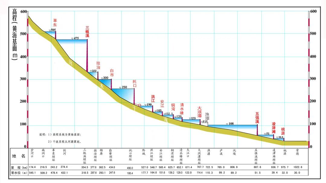 沅水是湖南境内水量最大的河流,沅水流域上的大型水电站最多,不仅有湖南境内的五强溪、洪江和托口水电站,还有上游贵州境内的三板溪和白市水电站等,形成了完整的流域梯级电站群,总调节库容达79亿m³,具有很强的流域梯级综合调节防洪能力。