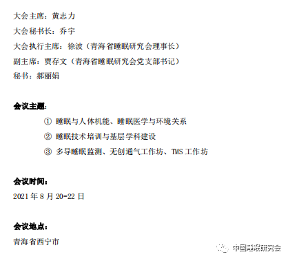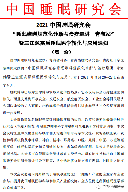 【会议通知】2021中国睡眠研究会 “睡眠障碍规范化诊断与治疗巡讲-青海站” 暨三江源高原睡眠医学转化与应用通知 (第一轮)